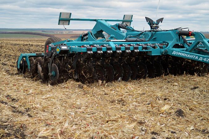 Дисковая борона «Доминанта» превосходно выполняет в этих сложных условиях измельчение растительных остатков и их интенсивное перемешивание с почвой на всей глубине обработки от 5 до 18 см.
