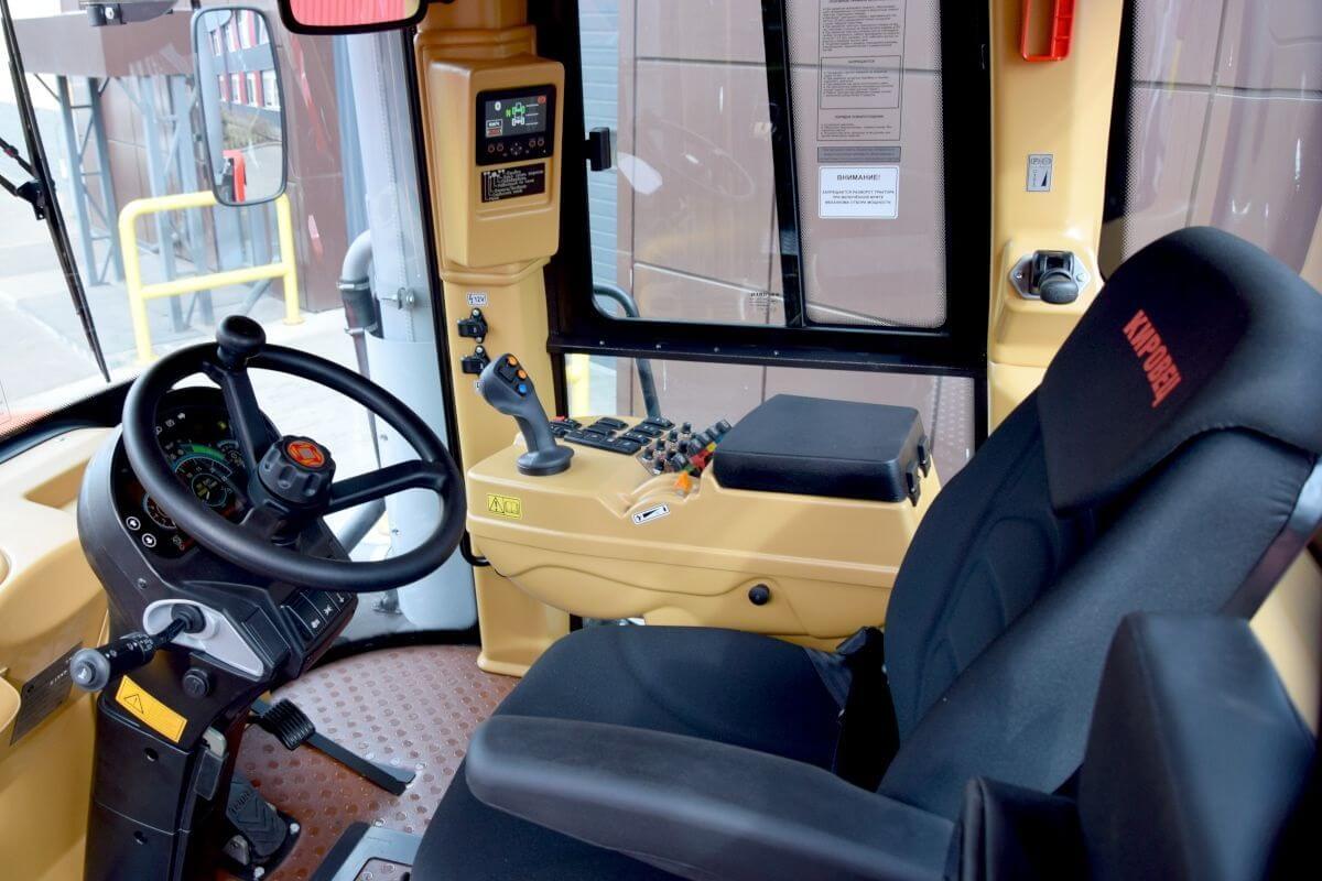 Кировец серии К-5 имеет просторную и эргономичную кабину исполнения «КОМФОРТ ПЛЮС». Ее безопасность полностью соответствует стандартам ROPS и FOPS.
