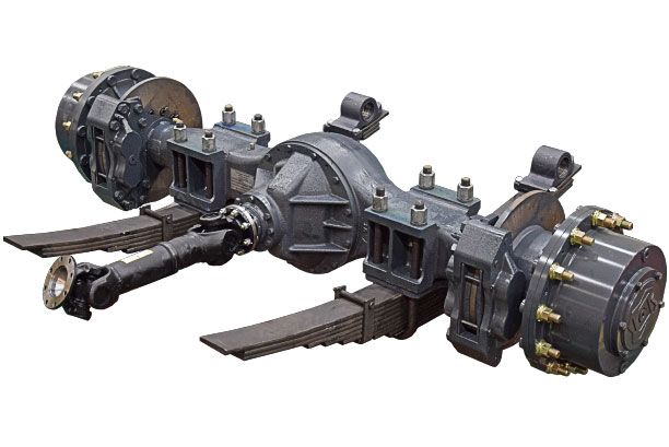 С самоблокирующимися дифференциалами, в состав моста входят унифицированные колесные редукторы планетарного типа.