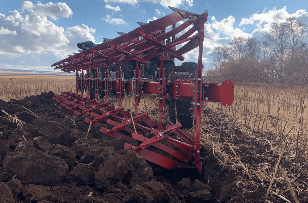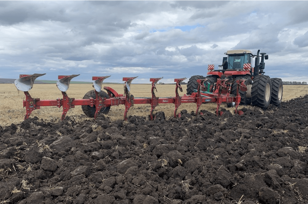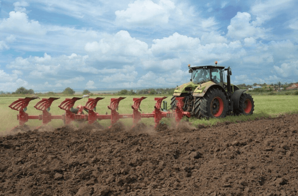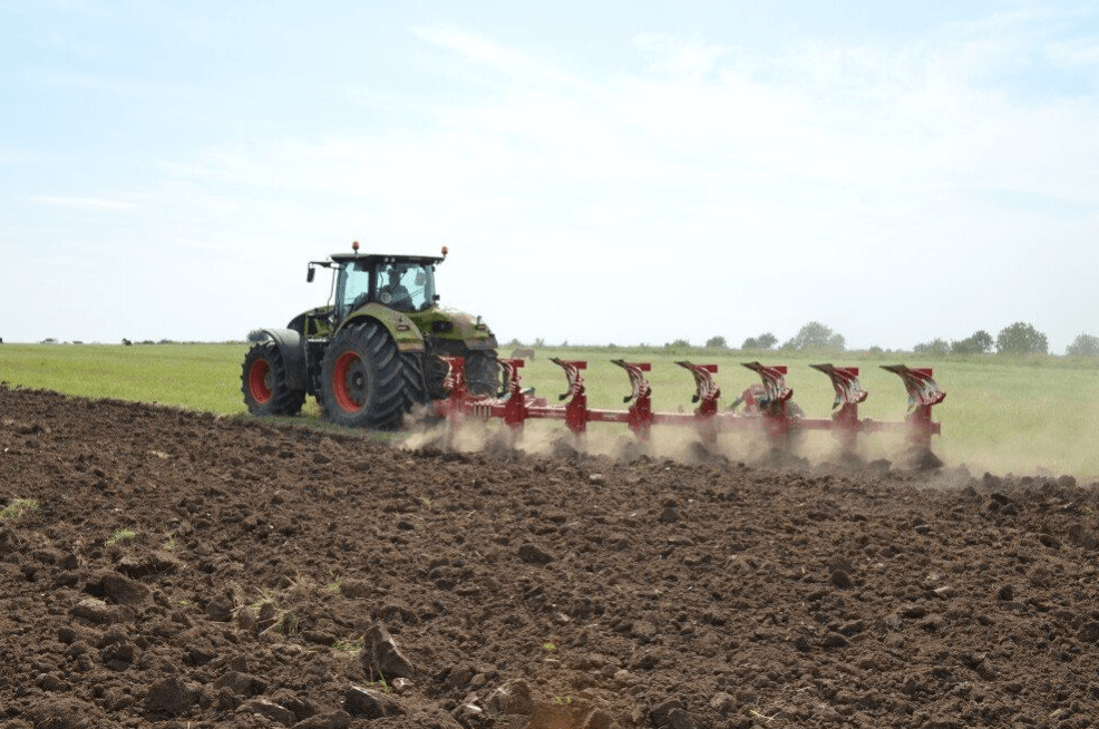 Идеальный вариант плуга для вспашки вне борозды с двойными колесами трактора.
