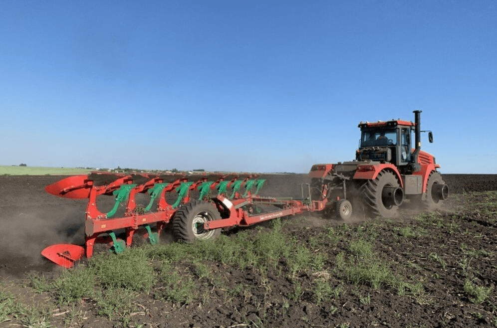 В частных случаях сможет плуг подходит даже под трактор шириной 4,65 м (трактор на спарках — и так трактор едет по полу всеми колёсами))
